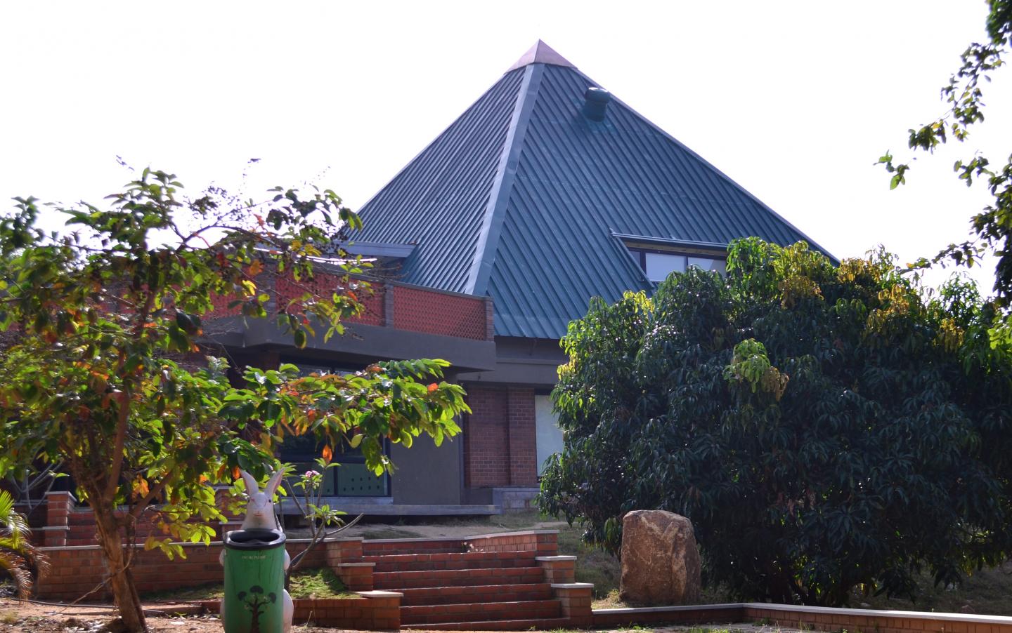 The Pyramid valley campus, a meditation centre required hall of varied sizes to conduct workshops. With this in mind, using the natural site contours this block has been designed with 3 halls to accomodate 250 people, 100 people and 30 people. This conference hall is designed in the shape of a Pyramid.