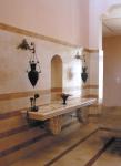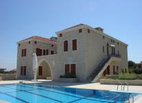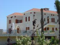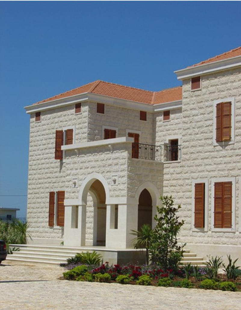 The site of the project is in South Lebanon . The climate is mild but humid in summer. On a fairly large and flat site, the client required a typical “Lebanese” house. This is traditionally a compact stone cube with red tiled roof. To integrate with the site, the traditional form of the cube was broken open into an " H " form to bring in the landscape and breeze through to the heart of the house. The back court, around which the formal areas are organized, extends to the pool deck.