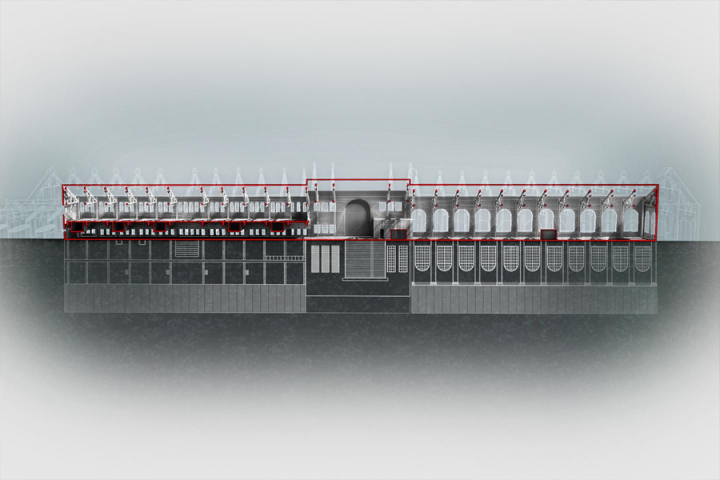 San Francisco is a city full of spontaneity. From stumbling upon a winery in an old warehouse, to an ecclectic food truck park, to a street performer popping up on the corner, the city is full of endless variety. While “U” Wait is a project that roots itself in these ideas, and finds itself in search of a new, experiential architecture. By mixing restoration, preservation, and construction, a new typology is born. This project situates itself in one of the most historically rich districts in the city, Pier 70. The defined hub of this area is the Union Iron Works machine shop, where history was created under its roof in the form of naval submarines for both World Wars. Utilitizing a precedent of the Fillmore jazz era, current day Fisherman’s Wharf, and a new city development plan for Pier 70, provided a platform for a new program for this historical space. A place where artists, dancers, performers, musicians, dining, film, and art exist under a singular roof. A place where formal performances and daily routines become celebrated. An architecture of experience, woven together by the rich thread of social media which ultimately connects us all.