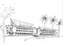 Master Plan, 3 floor height building unit classroom, multipurpose building, library, boarding house and other facilities.