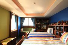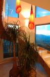 Cream ivory marble was selected for walls and floors on the first level and was combined with zebrano wood wall covers to hide some doors and storage areas. On the second level was installed a sliding door made of zebrano wood and textured acrylic to separate the public and private areas. The floors have oak board and in the double height family room a big red box was suspended. It has perforations that allow the flow natural light during the day and is indirectly lighted during the night creating a cozy atmosphere.