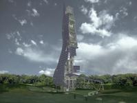 The SUNSCRAPER is more than 217 meters high, is built with 15.277 solar panels and is located in an imaginary pure and natural environment.
