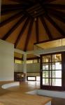 The building’s floor area is approximately 70m2, 1/3 of the floor is open air space as terrace and rare pass. And Inside, there are 3 heights of the floor, each gaps are 300mm, to offer children various kinds of sitting space. Sitting on the floor is unfamiliar custom for this village, so we brought this custom from Japan to give special feeling for children to read books. Many windows give good views and lights to inside; low long windows give gentle light to floor, high window offer ventilation and sequence of ceiling plane in and out, vertical window give a green view of rare site, and big sliding doors as entrance connect inside and outside, this library to the playground and classroom building.