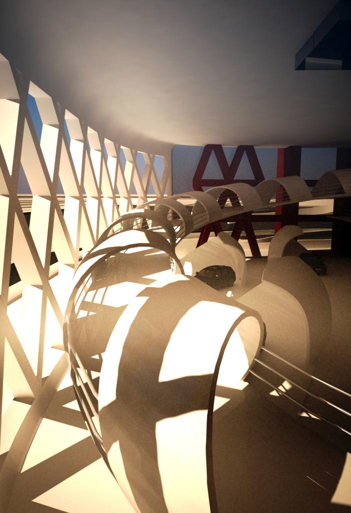 “Floors become walls, walls become ceilings.” This previous phrase describes the feeling of infinite continuity. Both feeling and phrase were what guided me to develop, fabricate, generate, and finally produce the “Audi Auto-Mall Project” which is inspired by several works which are: (see relevant slide no.2)