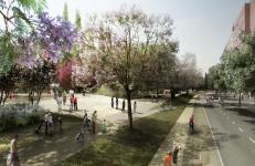 Mediterranean corridor finalist in the competition for the Sagrera linear park.