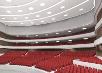 The building consists of two prismatic volumes (white and a black), that surround a sphere of light. The symbolism is obvious. The white and black dragons of yin-yang. The yang volume is light and transparent. It is porcelain white and in our concept represents the eastern culture. On the other hand yin, the black volume, stands for the western culture. It is introvert, earthy, rational. Solid with sharp edges, made of hard black granite. The western art of opera meets the Far East in a building. In the center of a tight embracement of the two dragons, lies auminous dome that symbolizes the knowledge, the wisdom, the new culture that derives from the osmosis of the two civilizations. Both elements maintain their essence and dynamics while cooperating with each other in order to reach equilibrium.