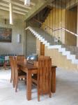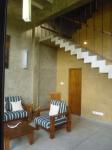This House was designed for a a doctor couple nearing retirement, who wanted to move into this small compact residence by a paddy field in suburban Colombo. This 150 square meter site was located at an end of a slope overlooking a panoramic view of paddy fields and distant trees.Residence was designed as a split level house with living dining hall in ground floor and master bedroom upper floor overlooking the paddy fields while service areas like kitchen, car port tucked on to the hill away from the paddy fields. Building was given a butterfly roof to suite the sloping site. Limited palette of materials such as exposed brickwork for exterior, cement rendered interior walls, titanium dioxide cement floors and black powder coated aluminium windows were used in the house. An existing Mango tree on the western edge of the house was retained to create a buffer from hot tropical sun. Existing rock boulders were also retained in the garden as landscaped elements. Garden proper was nominally landscaped while paddy fields were considered borrowed extended garden of the house.