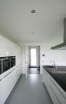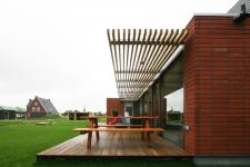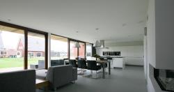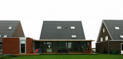 The parcel is 18 meter wide and 32 meter deep and is situated with the garden on the south side. The strict regulations of this development site define for a large part the shape of the building. However, there is enough room to give the house an individual character and to create a high quality home. Its the organization and technical detailing that makes the house special. The orientation of the site asks for a living space as large as possible adjacent to the garden, to create maximum contact between the living room and the garden. Therefore the total rear facade of the house is glass. The terrace and sunscreen adjoining the house makes the border between inside and outside as small as possible. The glass facade also creates maximum daylight into the living room. In winter this leads to a lower energy consumption. Less artificial light and less heating will be necessary. The porch is detailed in a way that sunlight in winter goes underneath and in summer the sun stays out. By using the whole width of the site for the house, maximum depth is left for the garden, and its shielded from the street. The house is 30 cm lifted from the site. At the street side, the house is more outstanding and at the back of the house, the terrace looks floating.