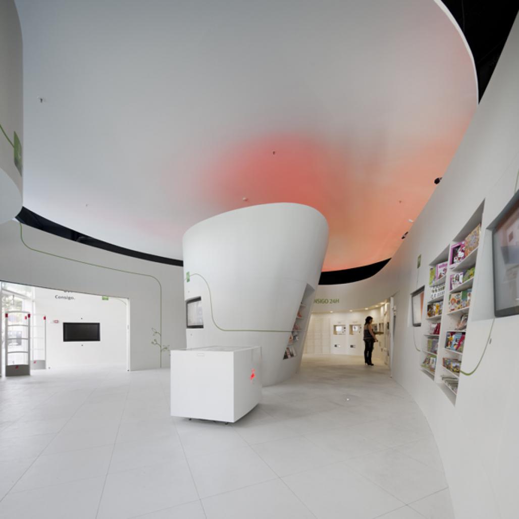 In the center of the spiral we find the personalized financial attendance rank, offering some privacy to the investor customer and allowing the closing through a pivotante panel absolutely integrated in the walls that contain it.