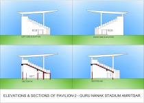 The V.I.P. pavilion has been designed for a seating capacity of 1500 persons. The design of the pavilion is governed by the factors like comfortable viewing angles, international norms for seating, provision of necessary facilities for players, besides the time and budgetary constraints. Meticulously designed pavilion accommodates changing rooms for players, wash rooms, pantry, lounge, entrance foyer and offices at ground level, that is underneath the seating steps.