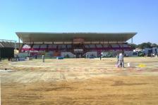 RCC framed structure has been adopted up to seating level with brick masonry infill walls. The canopy on the seating area is designed in pre-engineered steel structure which has been introduced first time in such buildings in the state. This structure has an edge over the conventional structures as it proves to be more precise, hassle free, economical and less time consuming. The structural components like pillars, girders, purlins etc., were designed as per exact requirements and manufactured in factories with great precision. These components then brought at sites and assembled in short span of time, thus meeting deadlines for World Kabaddi Cup.