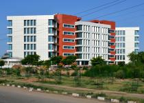 The building having an area of 152000 square feet plus 57000 square feet basement comprises six floors above ground. Basement is meant for parking of 150 cars and requisite services. Two circular ramps provide ingress and egress to the basement. The ground floor accommodates mainly entrance foyer, multipurpose hall, and miscellaneous services like bank, health clinic, gymnasium, maintenance stores etc. all the main offices are on upper five stories.