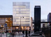 The signal-like extension stands out of its context by means of its evolving shape. It is a sensitive, delicate object, treated simply to avoid rivalry with the strong presence of the Flour Market. On the contrary it acts as a light, gravitational counterpoint. An architectural dialectic and emulation come into play much like a castle and its keep, both intrinsically inseparable.
