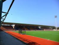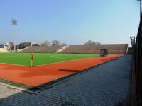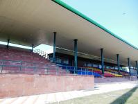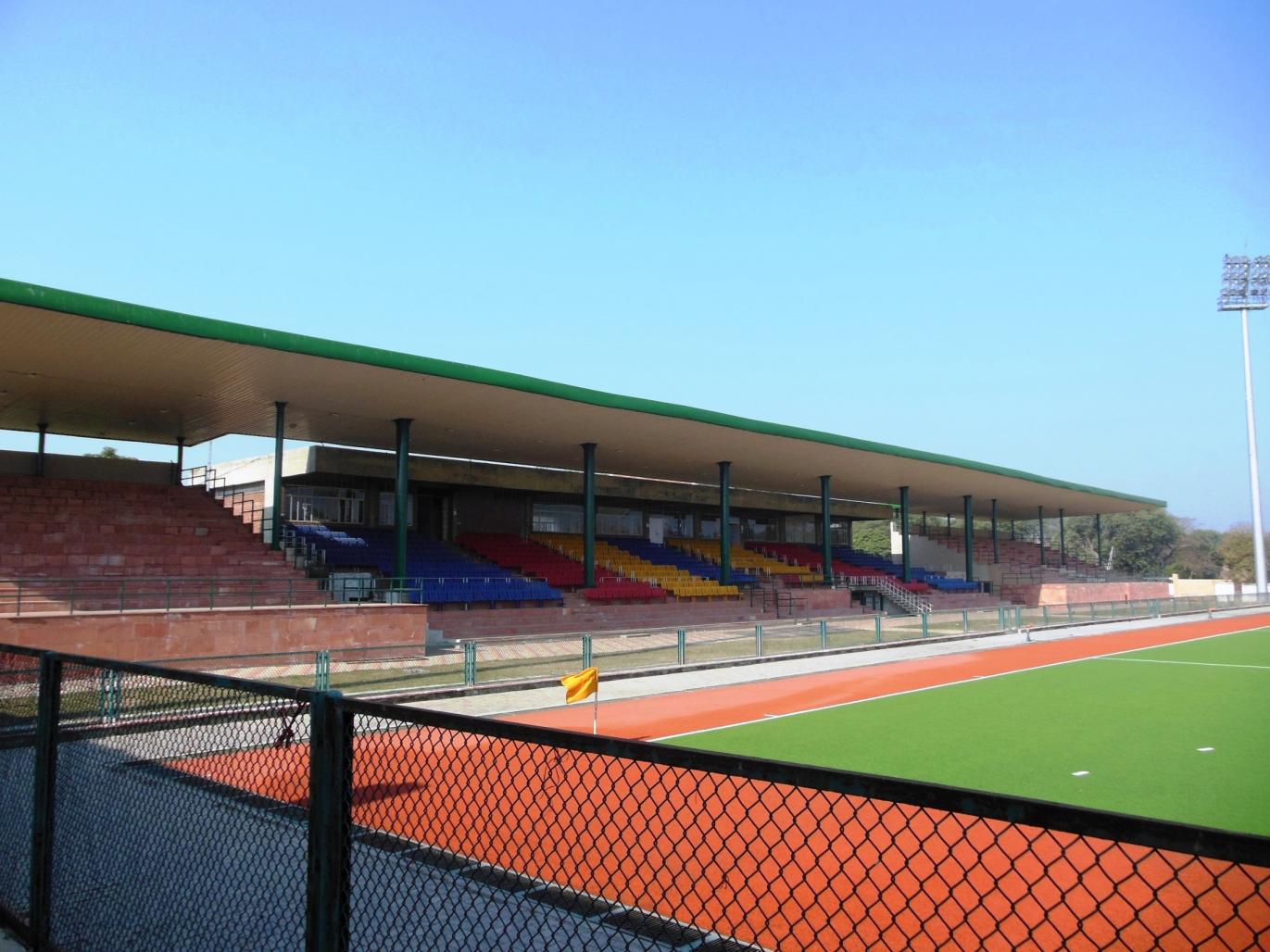 While designing the stadium the architect decided not to touch the existing utility building and small seating pavilion designed by Mohinderjit Singh. The challenge was thus how to augment the seating capacity and other facilities by ingeniously incorporating the existing block. In the light of the above it was decided to juxtapose two small pavilions on either side of the existing one after leaving a gap of 18 feet in between them. In addition to this, since the space permitted, some seating steps have been added in front of the existing pavilion. The space underneath the seating steps in new pavilions has been utilized by providing changing rooms for players, a dope testing laboratory and wash rooms. All the seating areas in both the pavilions and those in front of the existing one have been covered with a single giant canopy in pre-engineered steel. This canopy has been so designed as not to touch the existing pavilion in order to maintain its original character. From the playground side, this canopy binds together all the segments visually and makes it look one grand pavilion. The play of solids and voids and porosity in the built form further adds to its grandeur. In addition to this VIP Pavilion two more open-to-sky seating areas have been provided on the north and east sides. The space underneath seating steps has been utilized by wash rooms for public and stores. Together with well equipped seating pavilions, Astroturf and flood lights this stadium has come out to be a one of the best hockey venues in India.