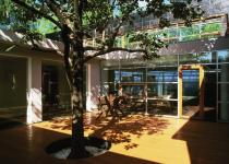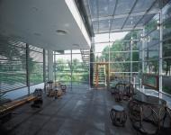 To realize this goal, a two-storey corridor was built to connect the original houses to mobilize the space. The corridor was made of glass in order to reduce its influence to the surroundings. From north to south, the courtyard could be divided into several parts, whose images were reflections of the ancient Chinese architecture. The front courtyard and entrance, the maim space, the lobby and atrium, and the salon beside the pond can be respectively correspond to the kiosks, central halls, courtyards and terraced pavilion in the ancient Chinese architecture.