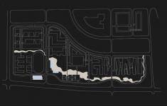 The staff service center of UFIDASOFT Headquarter covers three functions: staff kitchen, training center and communication center. As on and around the site is a tall poplar grove and a fish pond, we decided not to design a building complex to fulfill the three functions. Instead, we decided to design three buildings with smaller size to be arranged in the poplar grove and beside the fish pond.