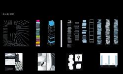 A further step of hybridisation of a base model is diversification of the level hights – changing the space form of given interiors, creating a preliminary layout of the desired emptiness-mass balance. The resulting level layout has been connected via a vertical construction, the communication and technical infrastructure core. Vertical partitions – the external walls consist of functional elements, generated by the earlier assumed set of the ‘programme squares’.