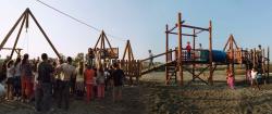 The playground was constructed by Roma builders and local and UK volunteers, including 17 students from 5 UK institutions. The primary material was timber, sourced locally and transported to site by horse and cart.
