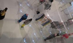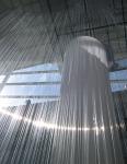 On a suspended steel structure of 54 mts2 conformed by a grid, from 13 mts height, 3.565 nylon threads were placed five centimetres between each other, one by one were tightened to the inferior plan of the ground to conform the space.