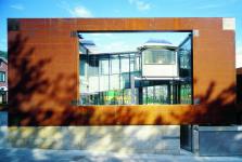 The inside of rusty mass could perforate for several garden spaces according to the intended form of life and the new and abundant stories of life will begin. The inner side that would be a surface of inside of the opened surrounding is composed with stainless which is a modern expression, and it could mean a new history of life from now. The roadside and the adjacent site is composed with Cor-Ten steel, on the other hand, the garden wall on the side is stainless. Through the two materials, it is intended to express the gap of time.