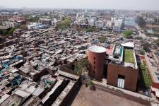 c - 28c, is Archohms Head office in India. Often labeled as a design fort, it reflects the mad and fun design philosophy of Archomites. Built up on 3022 SQMTS within the thick of city conditions, the site has an incredible context. Its triangulated plot is contained by, the jama mosque on one side, industrial factories on the other and a large slum development on the third.