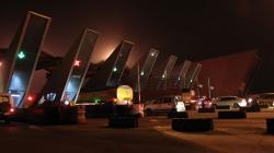 As a design solution, wing-like membrane structures were devised so that they could be vertically aligned for most months with an optional mechanically controlled system to weather protect. For the additional safety of the employees, concrete booths were designed and exaggerated to a 10 meter height, to scale the plaza differently. Functionally, these tall intimidating structures facilitate an increased visibility for the approaching traffic and the coloured signage centric lighting enhances the entire visual experience.