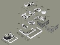Taking advantage of the plot’s conditions, the main focus was placed on renovating the house, stripping the residential interior and removing all familiar features to produce an entirely different environment.