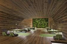 encounter with the exterior, once you enter you’ll find yourself in a terrace, where eating and drinking are embraced by natural vegetation. The building’s organic façade and landscape were carefully designed to become an extension of the restaurant creating a strong relationship between the inside and the outside.