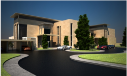 The house occupies Basement, Ground Floor and First Floor and a separate service quarter. The total built up area is 4400 sq m. The Roof is of aluminum with a glass panorama towards the first Floor level.