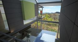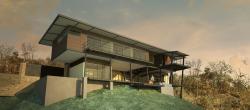 Located on a hill at 3km far from the beach, the residence has a great overview on the region. The house sits on a strong slope to take the maximum profit to the far and close landscape. The upper floor holds the bedrooms and kitchen while the lower floor has the open air living area with its pool and bar and a guest room. The overhanging roof protects the whole projects from direct sunlight and winter rains. The design tends to minimalise circulation which is projected on the back of the house separating the public and the private spaces. The house cools by itself thanks to the central position of the pool and the natural cross ventilation brought by louver windows.