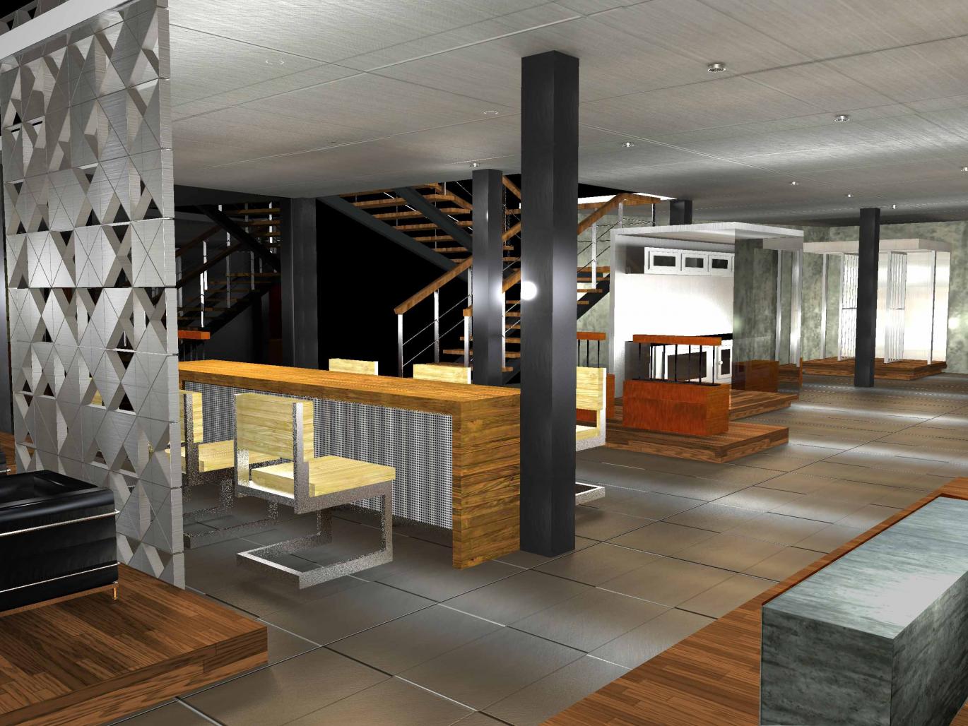 Project was to design a concept centre Showroom for a renowned steel fabricator and roller shutter door supplier in the hardware (Building materials) capitol of Sri lanka, the colombo suburb of Nawala. It is to be a addition alteration and refurbishment of an existing office building. Architects responded by adding a double height glazed cube to the road frontage of the building optimizing the views of the passers by in turn intended to be a glowing lantern in the night with generous lighting illuminating myriad options available to a customers to choose be it a steel gate, a roller shutter, steel handrail, steel grill or pantry cupboard. Existing features of the building with plugged in tall glazed cubes were developed to be display windows along the side road with solid walls camouflaged by root ball replanted mature trees