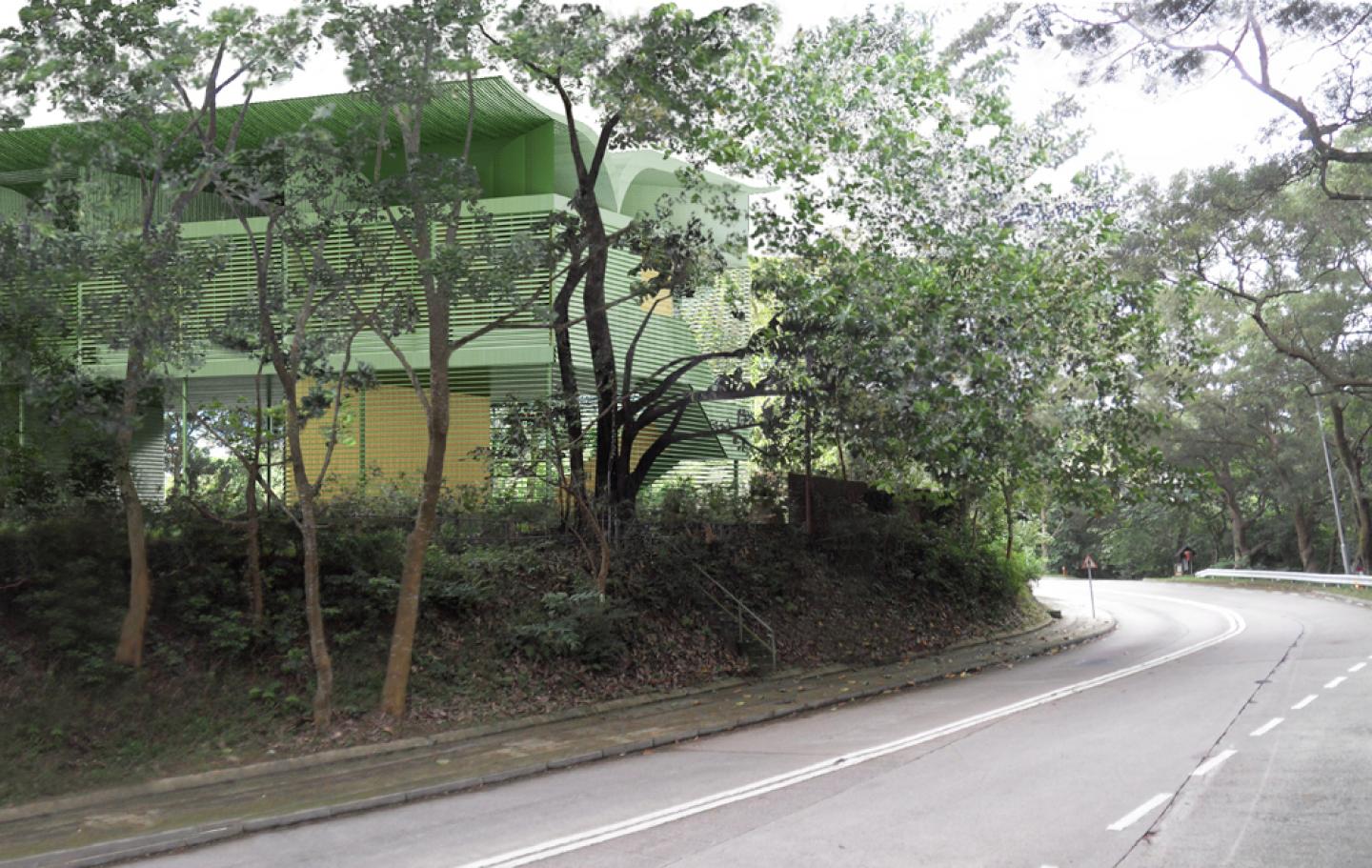 The site is in a valley sloping down to the sea on a forested costal island in Southern China.