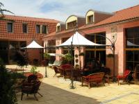Partial re-buildet. Created patio and buildong with offices for rent and club-bar with bowling and snooker club.