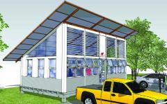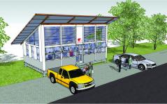 We ere invited to design a small scale milk bar kiosk which can be replicated island-wide as a prototype for the semi government milk manufacturing company MILCO Ltd. We responded by designing a simple lightweight mono pitched milk bar kiosk raised few feet above ground on stilts using a pallete of modern materials such as hot dipped galvanized steel frame, glass louvered windows, Zinc Aluminium wall cladding, timber worktops and floor desks, insulation sandwiched zinc aluminium roof cover etc.
