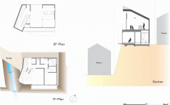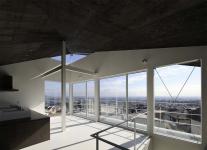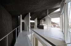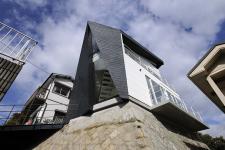 I used natural slate in the roof and wall in the part of shell. This material and polyhedron shape show various expression in a change in the weather, sunlight and lights up in the night. So this house have presence as a landmark in this town.
