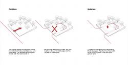 Trees and Slope are considered as major issues to the design. The form of the building becomes critical to the project. The building is like two lifted-up slabs with all the programs sandwiched in between. To better interact with this context, both the slabs and topography are folded to create touch points as well as interesting space.