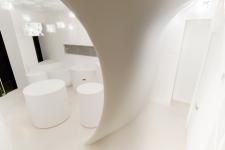 A wall with 3 curved surfaces was designed to gently wrap round itself in the central space on the ground and 1st floor of the existing building, built during the 18th century.