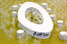 The whole structure is connected in one living space. Living is arranged like the passage which can make the circumference of a vast site an excursion round. This living is also a passage of this residence, is also a family’s living, and is also a guest’s living. All the places of Japanese culture transfer are also arranged in the living on this ring, and serve as a ring of Japanese activities.?The base of access to other rooms is in this living, the public element “Eating” in life was extracted to the ring, and made to continue. The communication produced focusing on “Eating” gathers people of each other for cultural Japan as common elements in exotic ground France, and enjoys new exchange.