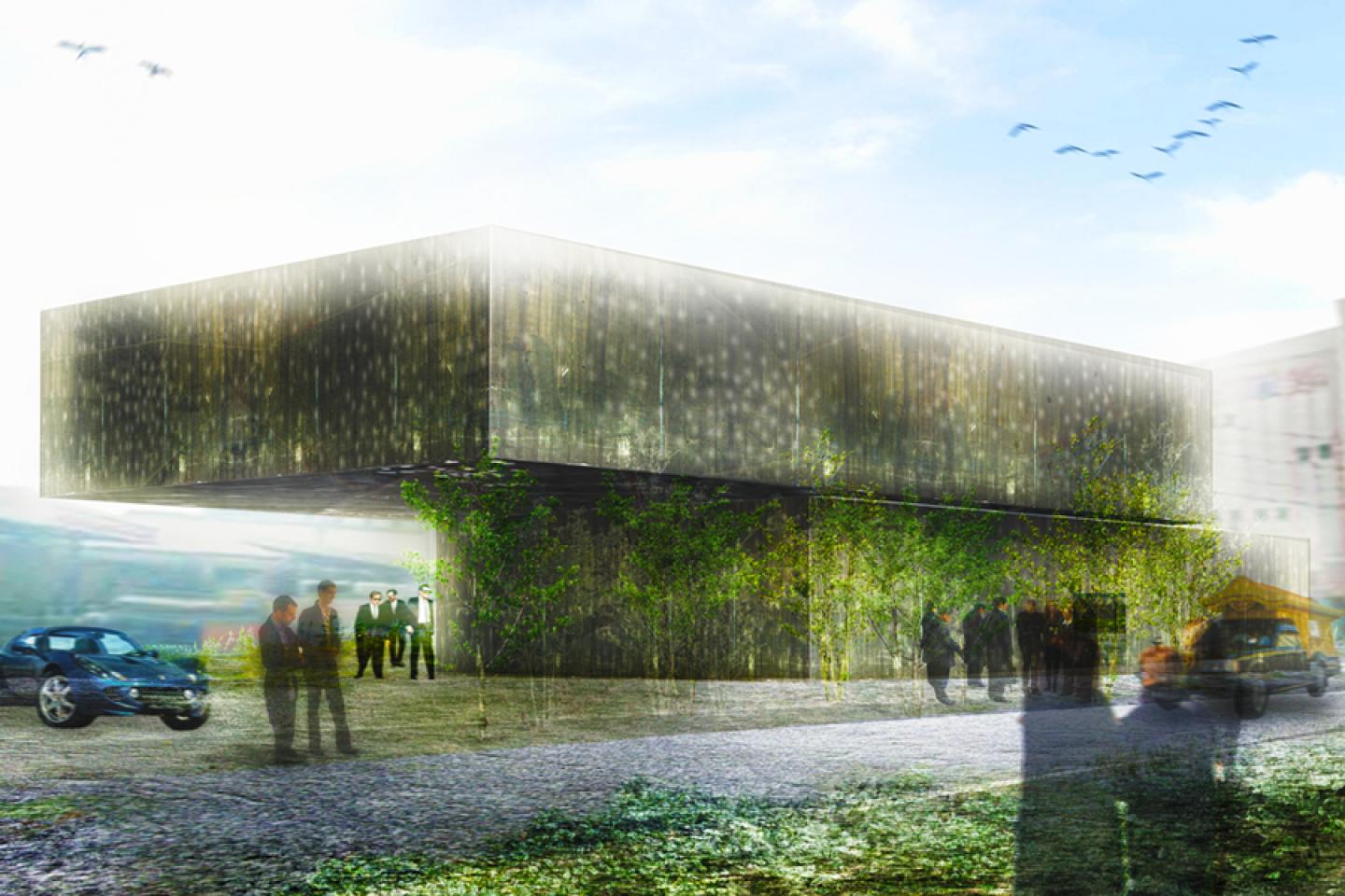 The facade is composed of a heavy stone wall which is perforated, filling the entrance hall with thousands of lights. The shadows cast by the wall are forever changing as time goes by. This place is recalls the memory of deceased.
