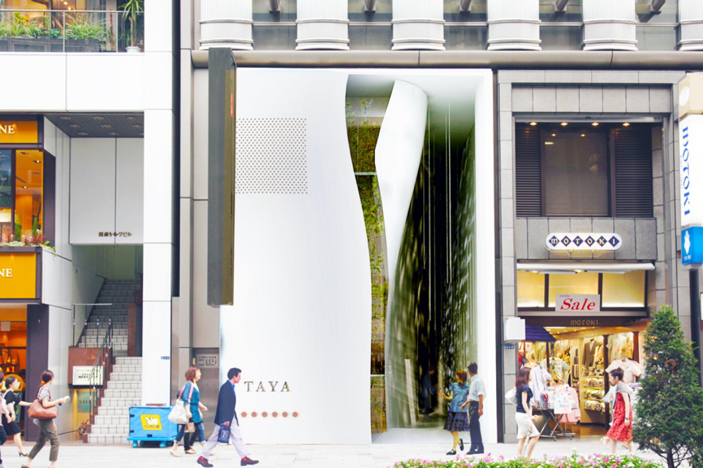 A curtain-like wall with a flexible form creates a ‘forest’ atmosphere in Ginza, the heart of Tokyo.