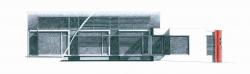Simplicity and geometric clarity were the overriding design aspirations. A long concrete beam with impressive clear spans is employed as a prominent circulation axis demarcating a clear approach to the building for both visitor and staff, and separating the production and administrative/service zones. It also serves as a unifying element that ties all of the various single storey building components and staff parking structures into a single architectural entity. Conceived as a double volume container, the large draughting office has a winged and centrally cantilevered concrete roof with clearstory windows to the south and north to ensure sufficient daylight. Individual offices and discussion nodes are attached to the glazed facades of the main volume as cubed pods framing views of the garden from within. A generous roof overhang shades the glazed façades of the main space whilst horizontal louvres provide shading to the office pods. Forming the building threshold from public to private and physically separating building from garden, is a linear water element. It also was meant to act as security deterrent although it was later deemed inadequate and a perimeter fence added. A brightly coloured curved wall element shield the building from the fierce west sun whilst providing visual relief and suggesting movement.