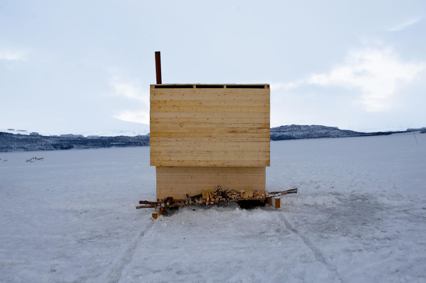 NOMAD SAUNA is part of the Nomad City / Aurora Observatory workshop Røssvatnet Lake, Norway.