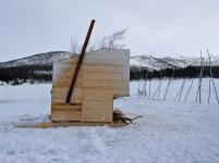 Architecture is environmental art. The students were given a task to make a personal nomad shelter and collectively to build a movable Nomad Sauna on skies and an Aurora Observatory. Under the ice there were beautiful salmon related fishes - trout and arctic char. Local Knowledge was needed in order to get them up. The farmers around the lake were generous in helping the students and more than that curious to see if they could manage in the demanding Nordic winter conditions. For the course the survival was not enough - the students had to manage to construct in 1:1 scale and find beauty through their actions in the frozen environmen