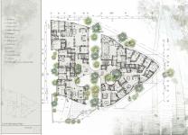 Niavaran Residential Complex is located in Tehrans Shemiran area. Shemiran, being spread along Alborz Mountains slope, used to be a summer resort of Tehran until 40 years ago due to its numerous gardens. Presently, still a good number of old trees exist in Shemiran area. The parcel of land allocated to this project accommodates a number of these old trees too, whose conservation has been considered as the first priority in designing this complex.