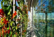 The green facade system filters harsh sunlight, while maintaining sweeping views of the city. The exterior misting system provides passive cooling to the building occupants by creating a temporal ‘cloud’ around the facade.