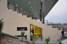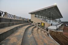 The V.I.P. pavilion has been designed for a seating capacity of 1500 persons. The design of the pavilion is governed by the factors like comfortable viewing angles, international norms for seating, provision of necessary facilities for players, besides the time and budgetary constraints. Meticulously designed pavilion accommodates changing rooms for players, wash rooms, pantry, lounge, entrance foyer and offices at ground level,that is underneath the seating steps.