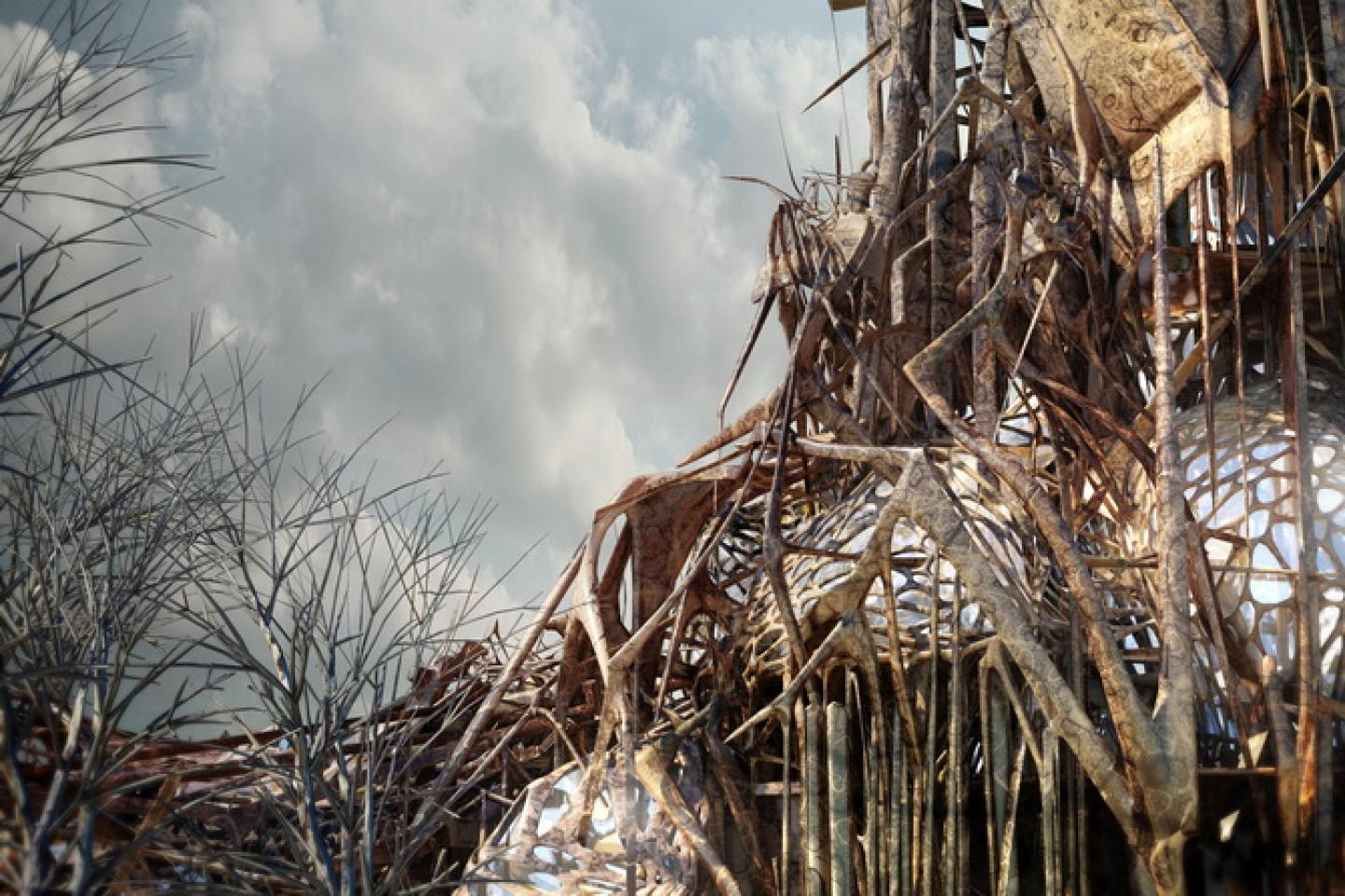 I chose to keep the existing building, but to contaminate it with structures that would express a complexity that now is missing. My intervention was inspired both from Nature and Culture, and beyond its polemical characteristics it does intend to bring back what in science is called: Spontaneous Order.