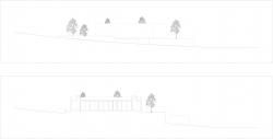 The peripheral condition of the terrain to be occupied dictated the disposition of the house. Situated between a railway, a cemetery and a group of livestock pavilions southwards, it’s developed in a U shaped block that organizes and relates all the house compartments minimizing the visual contact with these sites. Therefore, the U is centered in the living room, facing south. The west block is occupied by the kitchen and the dining room oriented eastwards, to the rising sun. This set of areas opens to a green central patio punctuated by a small well designed according to the house shape. The east block is occupied by the bedrooms and the bathrooms facing east, seeking the most favorable disposition to its use. This way, two closed, blind blocks appear when viewed from the road or railway which presence is eliminated guaranteeing the necessary privacy for the house. One hole on the north façade marks the entrance of the house giving it a clear and evident appearance. The garage that occupies the sublevel follows up the disposition of the inhabited level relating workspaces with the car parking. Its concrete walls try to contrast its roughness and expressivity with the apparent purity of the white plaster of the inhabited block. The surrounding walls, which also differ from the white block in color, try to create the same relation and give the sense of a white, pure block which rests over a dark earthly plinth.