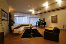 In this project the biggest challenge was the design of the dinning and living room, being it the heart of the home and where social life happens. Circulation towards the terrace was needed in this space, so the decision was to rotate the corridor to create two triangle shape areas. In the first one, that is bigger, the dinning and living rooms and bar were located. In the second one a piano and old furniture creating an important contrast with the rest of the décor.