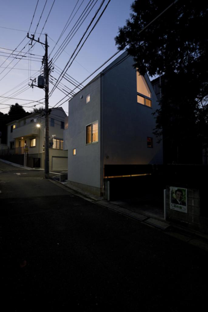Detached house that builts on compact site in intersection in residential area .